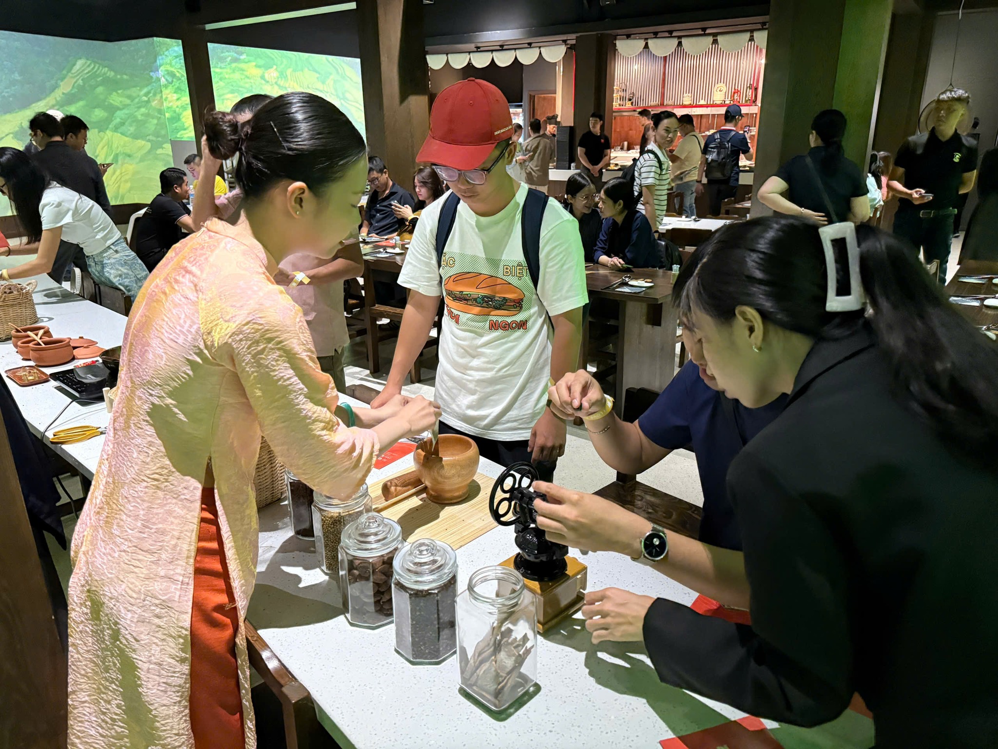 Du khách bước vào không gian thực hành phở, nơi các nghệ nhân trực tiếp trình diễn những công đoạn làm phở truyền thống.