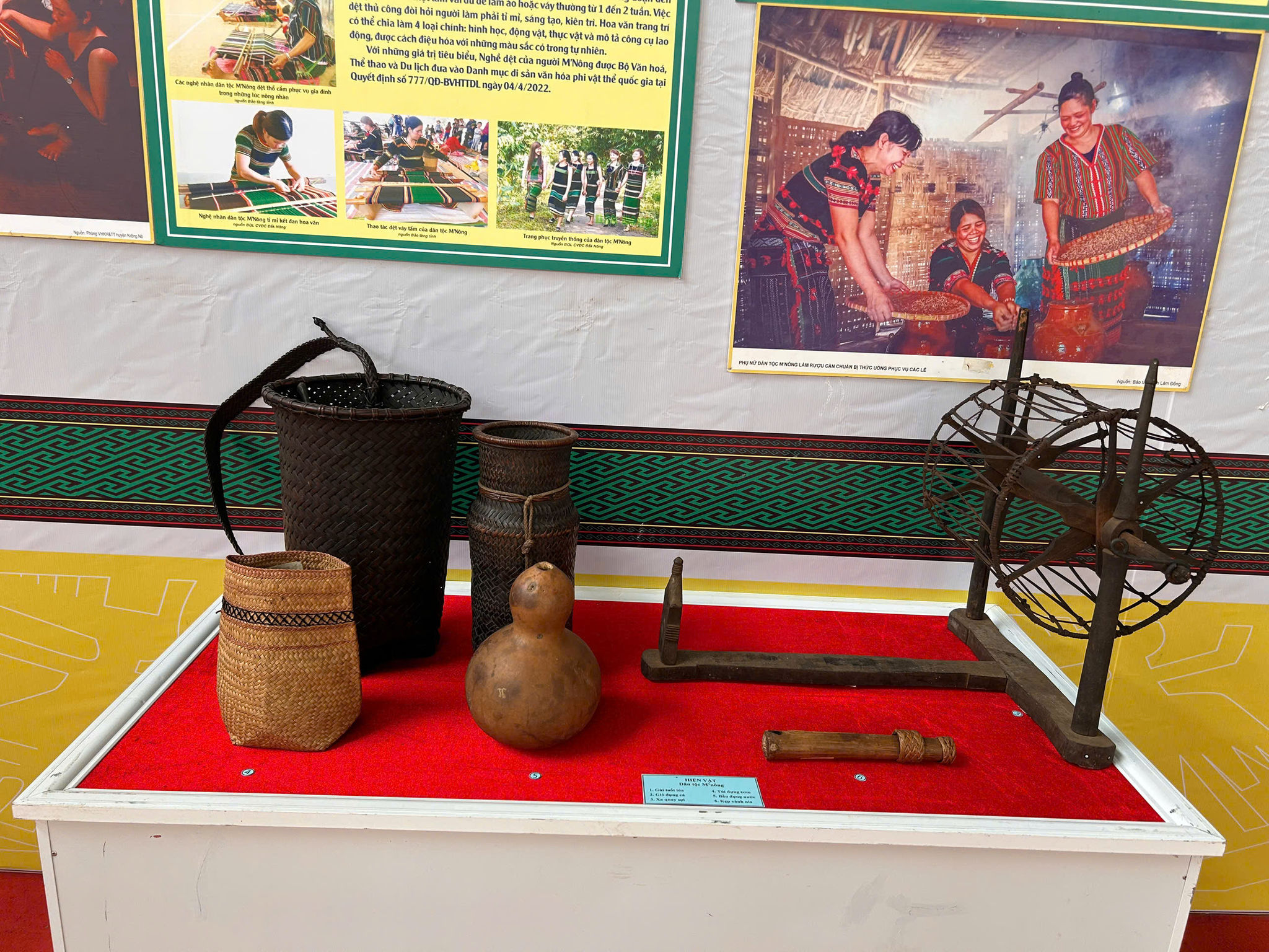 Trưng bày các hiện vật trong đời sống hàng ngày của dân tộc M’nông