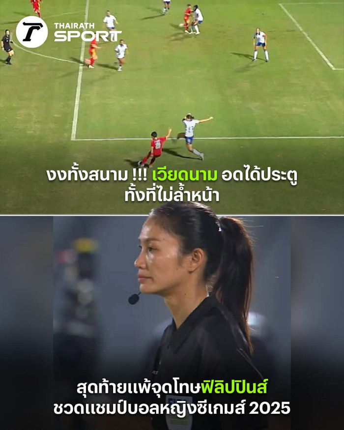 Theo tờ Thairath, tuyển nữ Việt Nam đã bị trợ lý trọng tài bắt sai trong tình huống ghi bàn ở phút 30, nhưng một số người hâm mộ lại hiểu lầm về trọng tài Lào thành… trọng tài Thái Lan.