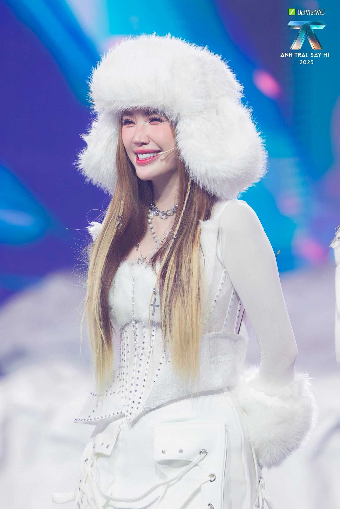 Dù đã gần hai thập kỷ kể từ khi ra mắt, nữ ca sĩ sinh năm 1988 vẫn giữ được vẻ đẹp tươi tắn, làn da căng mịn và thần thái rạng rỡ. Điểm đặc biệt là khi đứng cạnh đội hình toàn thí sinh Gen Z, khán giả không nhìn thấy sự chênh lệch về độ tuổi giữa cô và các "anh trai".