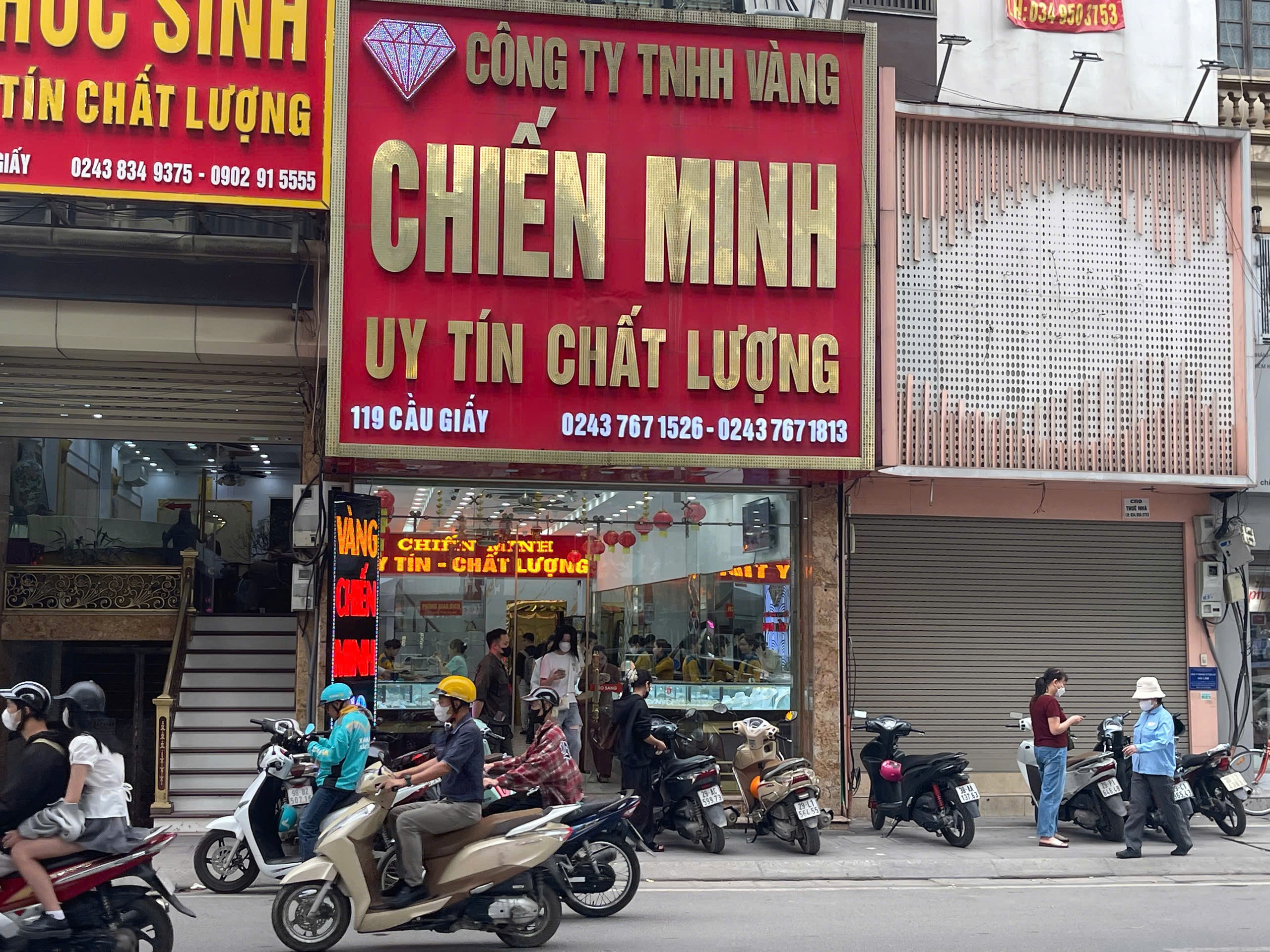 Trước đó chiều 25/3, lực lượng chức năng đã xuất hiện tại 3 điểm mua bán vàng của Bảo Tín Minh Châu. Các cửa hàng trên phố Cầu Giấy, Trần Nhân Tông của thương hiệu sau đó đều đóng cửa cuốn, tạm dừng giao dịch.