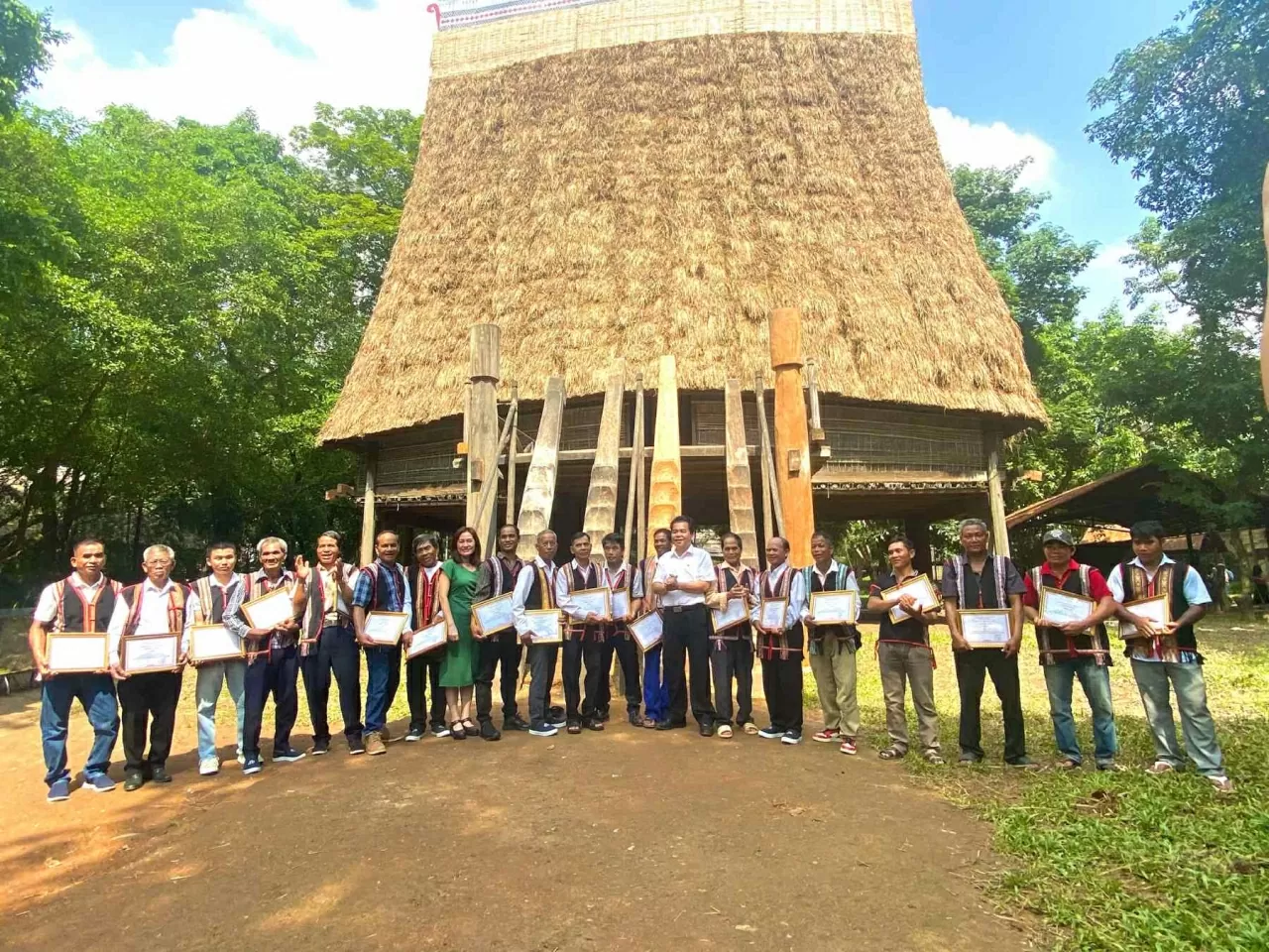 20 người Ba Na nhận bằng khen từ Bảo tàng Dân tộc học Việt Nam. (Ảnh: Bích Ngọc)