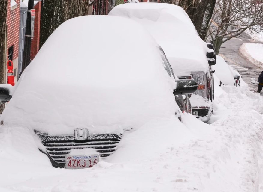 Nhiều phương tiện bị chôn vùi trong bão tuyết. Ảnh: AP