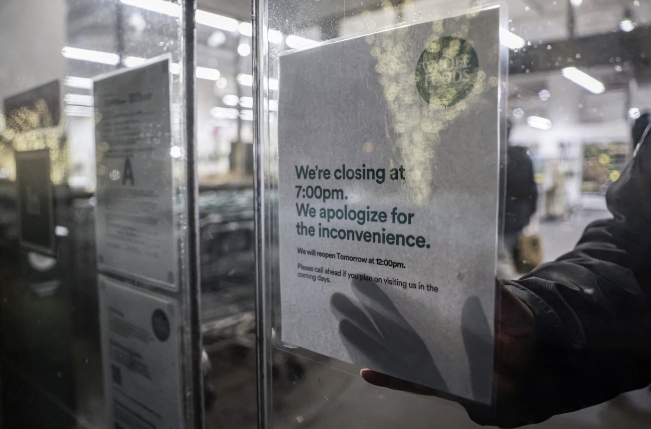 Các biển thông báo đóng cửa nhà hàng và doanh nghiệp vì bão tuyết ở New York.