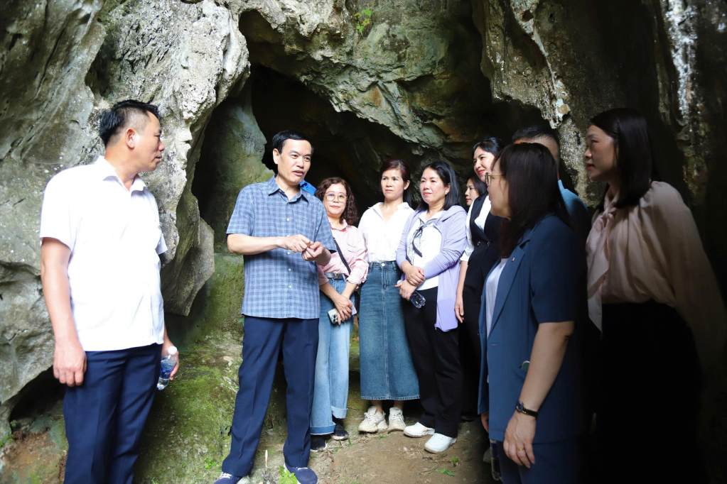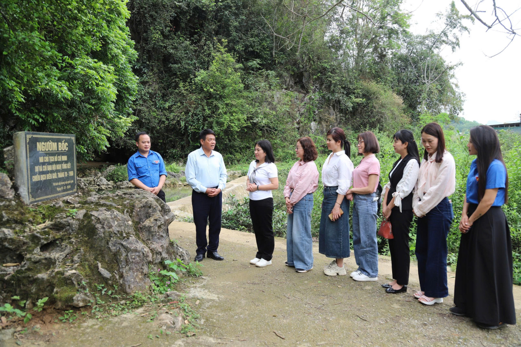Đoàn công tác tham quan, tìm hiểu di tích hang Ngườm Bốc - địa chỉ đỏ gắn với lịch sử báo chí cách mạng Cao Bằng.