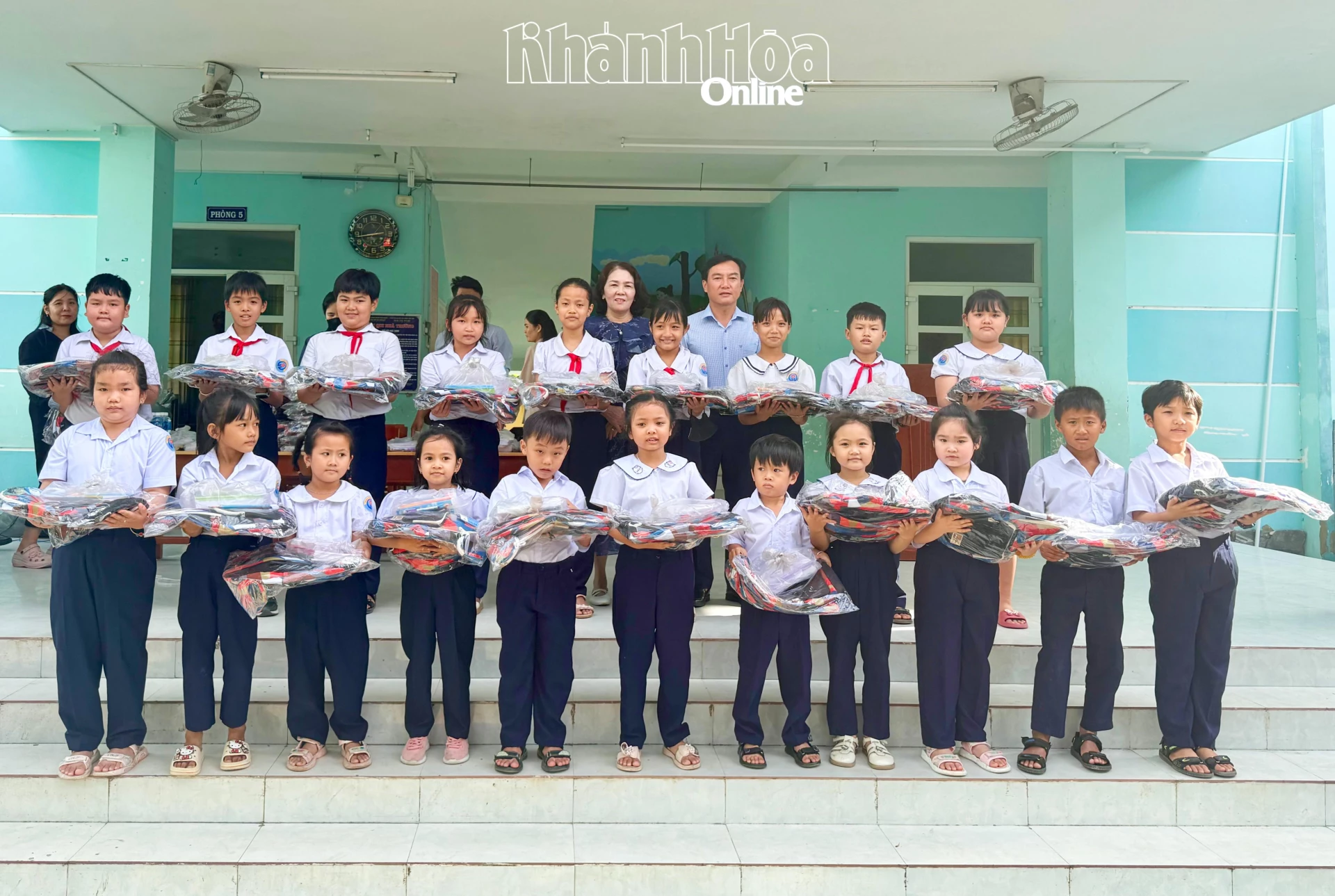 Lãnh đạo Báo và Phát thanh, Truyền hình Khánh Hòa trao quà “Tiếp sức đến trường” cho học sinh Trường Tiểu học Bình Quý 1.