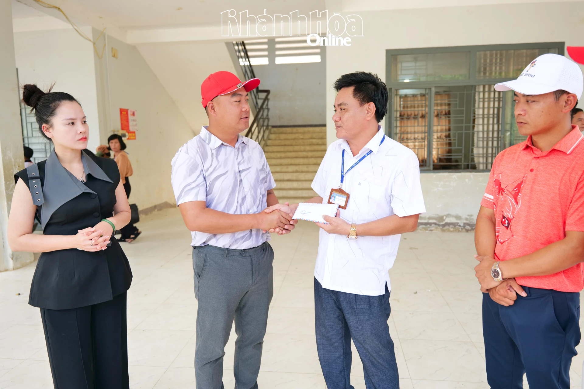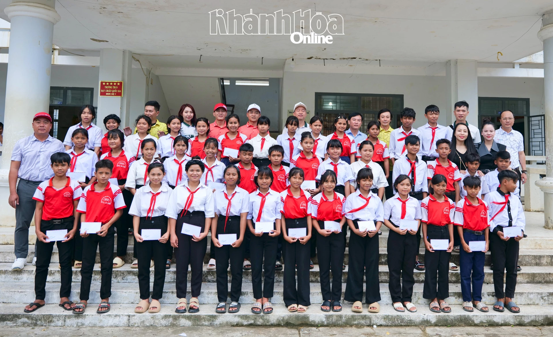 Lãnh đạo Báo và Phát thanh, Truyền hình Khánh Hòa, Câu lạc bộ Golf Đinh Mão 1987 trao quà hỗ trợ cho học sinh Trường Phổ thông Dân tộc bán trú THCS Đinh Bộ Lĩnh.