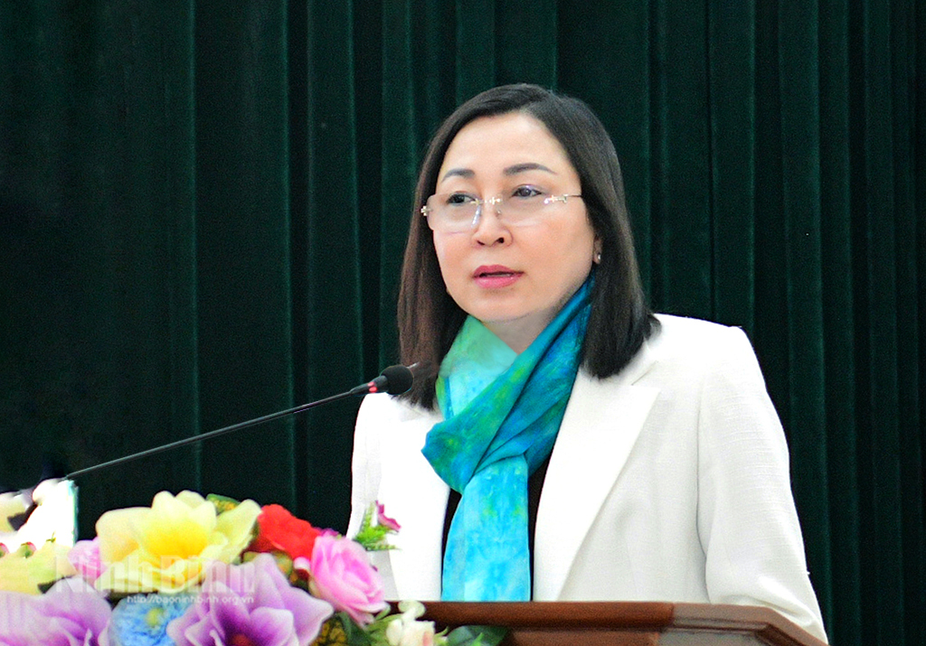 Đồng chí Đinh Thị Lụa, Phó Bí thư Thường trực Tỉnh ủy phát biểu chỉ đạo tại hội nghị.
