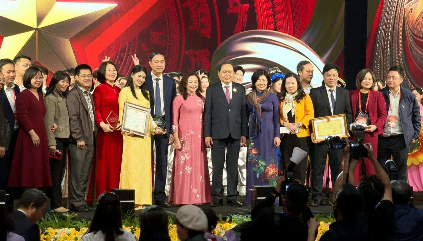 Phóng viên Báo và Phát thanh, Truyền hình Phú Thọ nhận giải Khuyến khích, Giải Diên Hồng lần thứ tư. Ảnh: Báo Nhân Dân