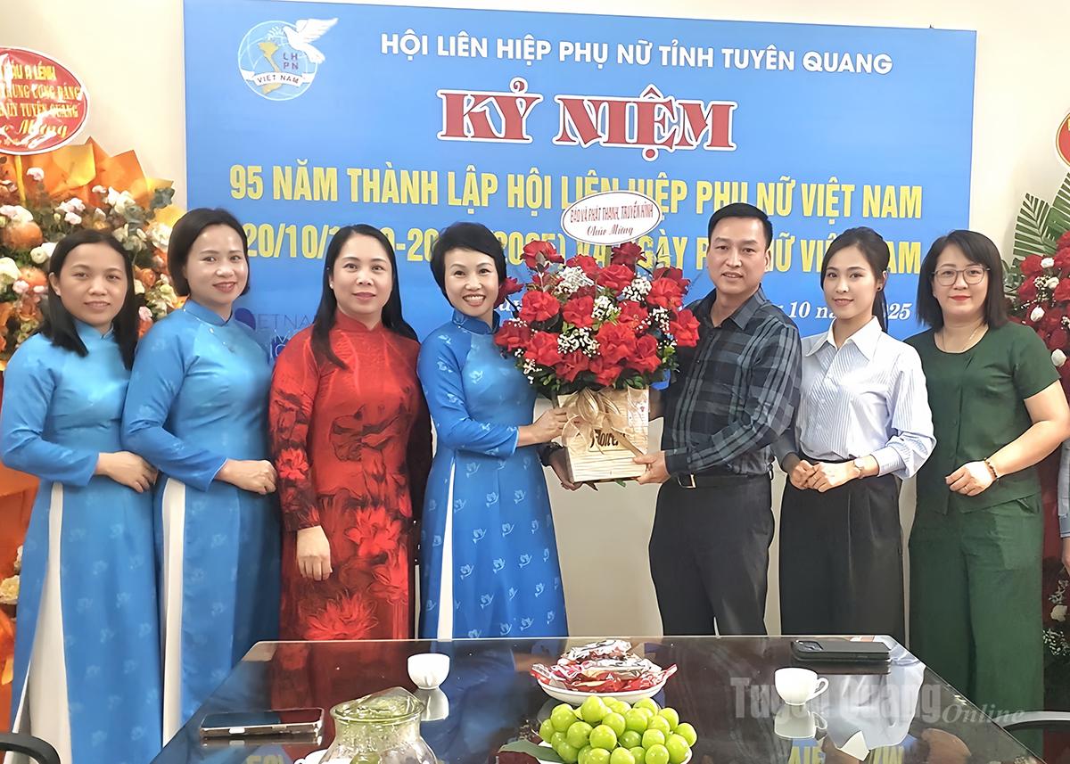Lãnh đạo Báo và phát thanh, truyền hình Tuyên Quang chúc mừng Hội LHPN tỉnh nhân dịp kỷ niệm 95 năm Ngày thành lập Hội Liên hiệp Phụ nữ Việt Nam.