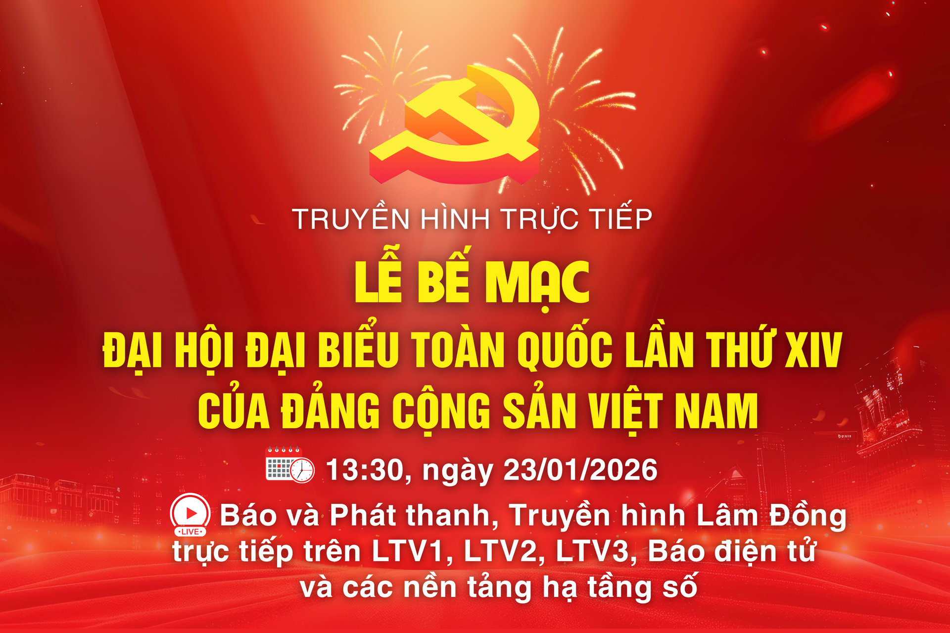 Lễ bế mạc Đại hội đại biểu toàn quốc lần thứ XIV của Đảng được Báo và Phát thanh, Truyền hình Lâm Đồng kết nối, tiếp sóng trực tiếp trên các kênh: LTV1; LTV2; LTV3, Báo Lâm Đồng điện tử và các nền tảng hạ tầng số.