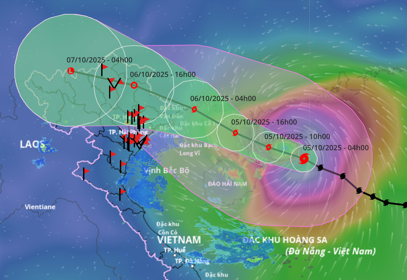 Vào 4h sáng 6/10, khi đang trên vùng biển Quảng Ninh – Hải Phòng, áp sát đất liền khu vực Quảng Ninh, gần biên giới Việt – Trung, bão mạnh khoảng cấp 9, giật cấp 12.