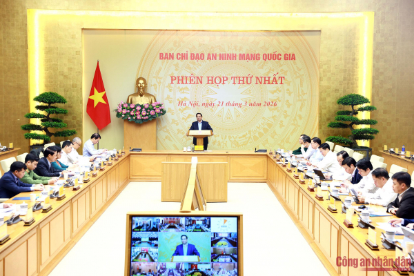 Trong khuôn khổ các hoạt động trọng tâm nhằm tăng cường bảo vệ chủ quyền quốc gia trên không gian mạng, ngày 21/3, tại Trụ sở Chính phủ, Ban Chỉ đạo An ninh mạng quốc gia đã tổ chức Phiên họp lần thứ nhất năm 2026. Thủ tướng Chính phủ Phạm Minh Chính, Trưởng Ban Chỉ đạo, chủ trì phiên họp.