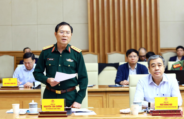 Đại tướng Nguyễn Tân Cương, Ủy viên Trung ương Đảng, Thứ trưởng Bộ Quốc phòng phát biểu tại phiên họp.