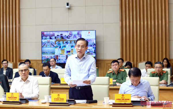 Trung tướng Lê Xuân Minh, Cục trưởng Cục An ninh mạng và phòng, chống tội phạm sử dụng công nghệ cao báo cáo tóm tắt tình hình, kết quả hoạt động của Ban Chỉ đạo.