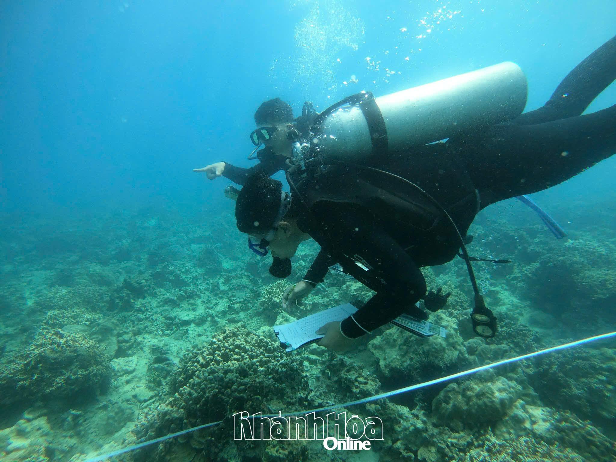 Thợ lặn thu thập dữ liệu đáy biển ở Hòn Mun (vịnh Nha Trang). Ảnh: Ban Quản lý vịnh Nha Trang cung cấp