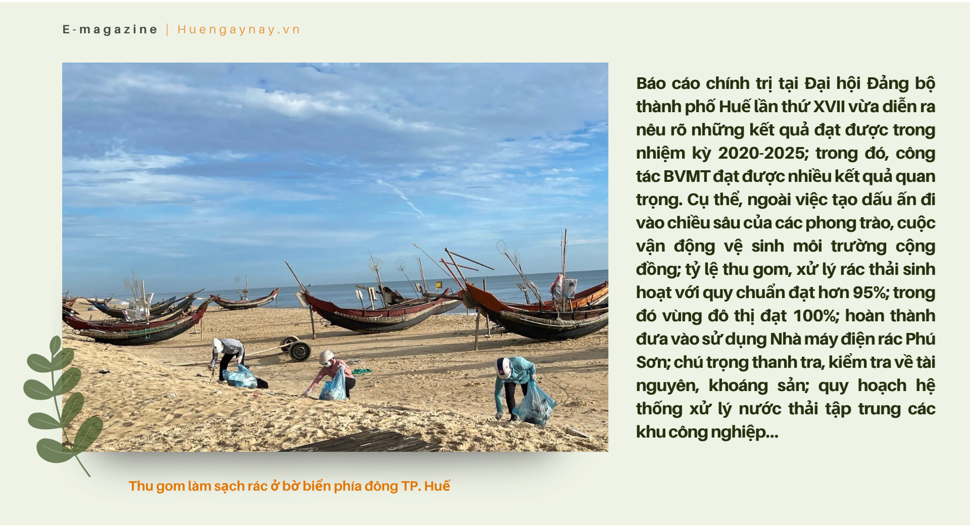 Các khu vực, cơ sở trước đây là “điểm nóng” về ô nhiễm môi trường, như CCN Thủy Phương (nay là phường Thanh Thủy); làng bún Vân Cù (phường Kim Trà), làng nghề vôi hàu ở đầm Lập An (xã Chân Mây-Lăng Cô)… nay đã được khắc phục. Các DA cấp thiết về BVMT, phòng chống thiên tai, ứng phó với BĐKH vùng ven biển tại phường, xã: Thuận An, Vinh Lộc, Phong Quảng… được ưu tiên triển khai. Các công trình, hạng mục hạ tầng kỹ thuật đô thị, BVMT được đầu tư, đưa vào sử dụng đã góp phần trong việc đồng bộ cơ sở hạ tầng chung, cải thiện chất lượng môi trường ở các phường trung tâm và ven đô. Công tác phòng ngừa, kiểm soát ô nhiễm môi trường được chú trọng, triển khai đa dạng trong các lĩnh vực công nghiệp, năng lượng, dịch vụ, thương mại, giao thông vận tải đạt nhiều kết quả quan trọng.