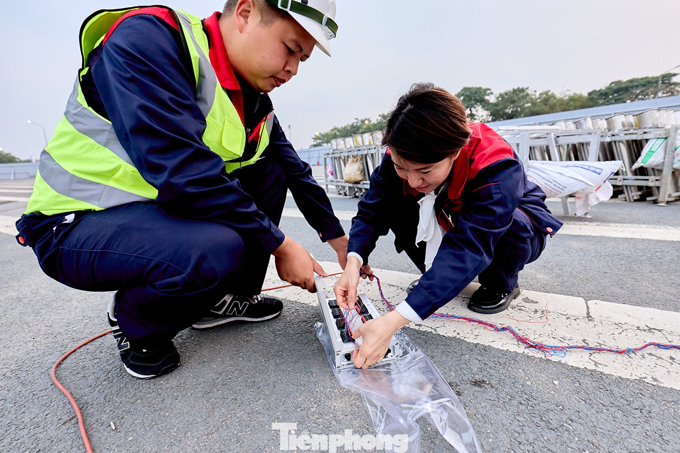 Trong khu vực kỹ thuật, khoảng 80 chuyên gia trong và ngoài nước đang tiến hành kiểm tra lần cuối hệ thống điều khiển và lập trình pháo hoa. Toàn bộ quá trình vận hành được điều khiển bằng công nghệ hiện đại, cho phép tính toán thời gian kích nổ với độ chính xác tới 0,0001 giây, giúp pháo hoa khớp nhạc gần như tức thì.