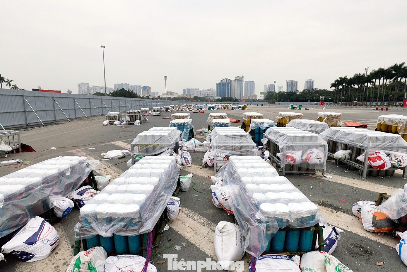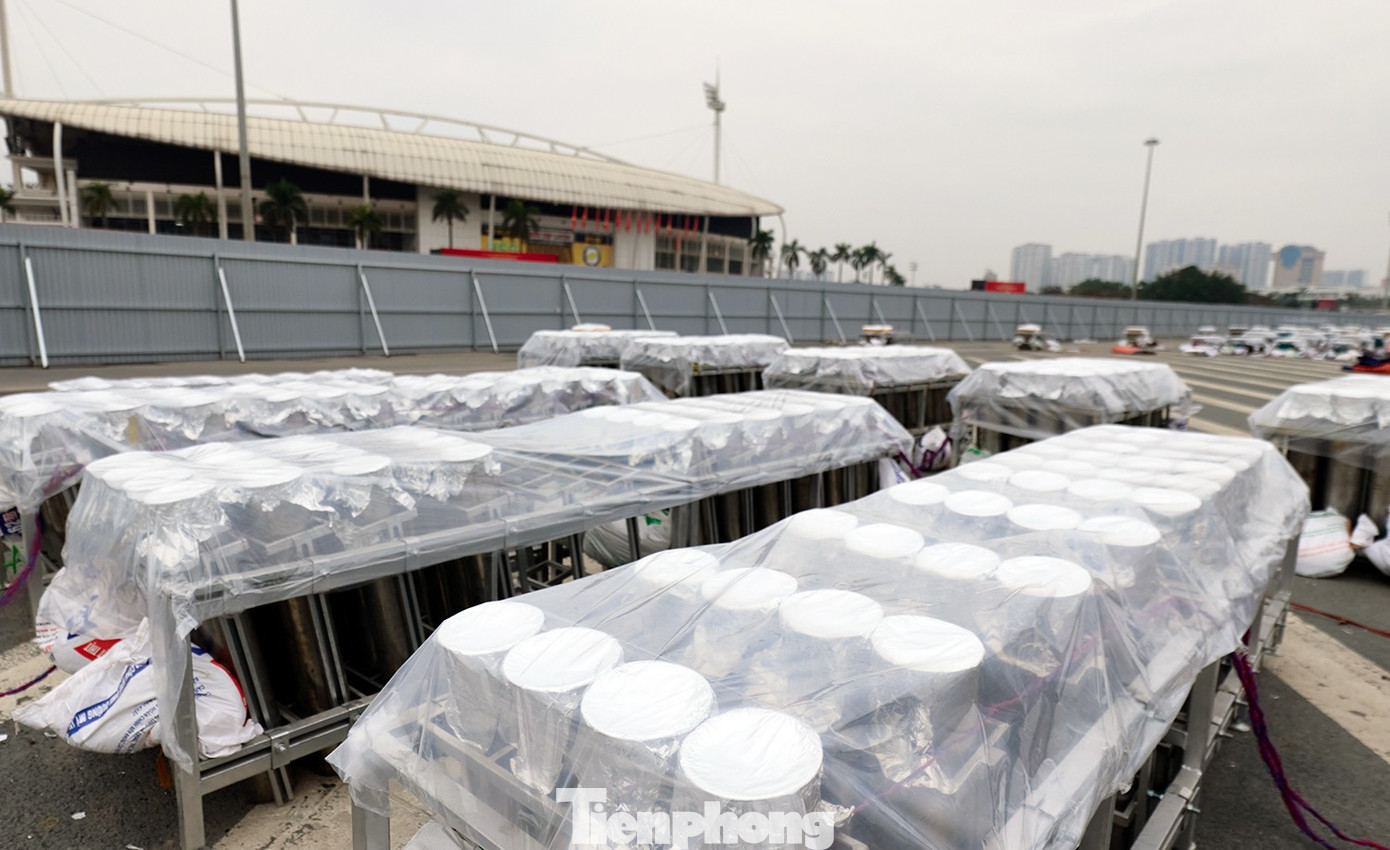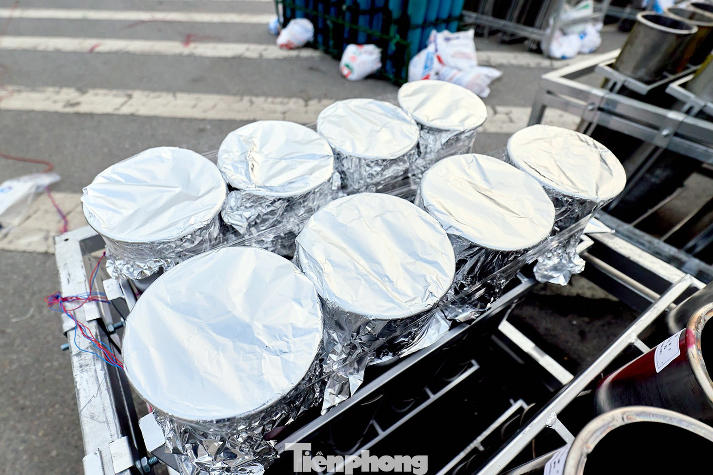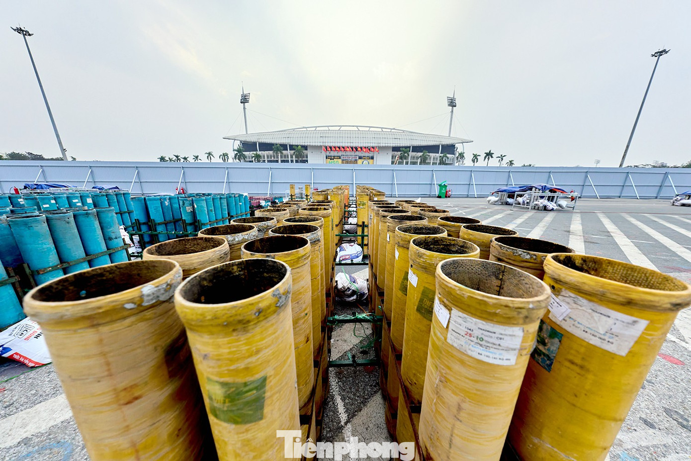 Ghi nhận tại hiện trường, gần 10.000 đơn vị pháo hoa tầm cao và hỏa thuật đã được bố trí tại khu vực sân Mỹ Đình và các tuyến lân cận. Hàng nghìn ống pháo, giàn phun được lắp đặt dọc theo khán đài B sân vận động, sắp xếp theo địa hình vòng cung, cố định chắc chắn bằng hệ thống giá đỡ chuyên dụng.