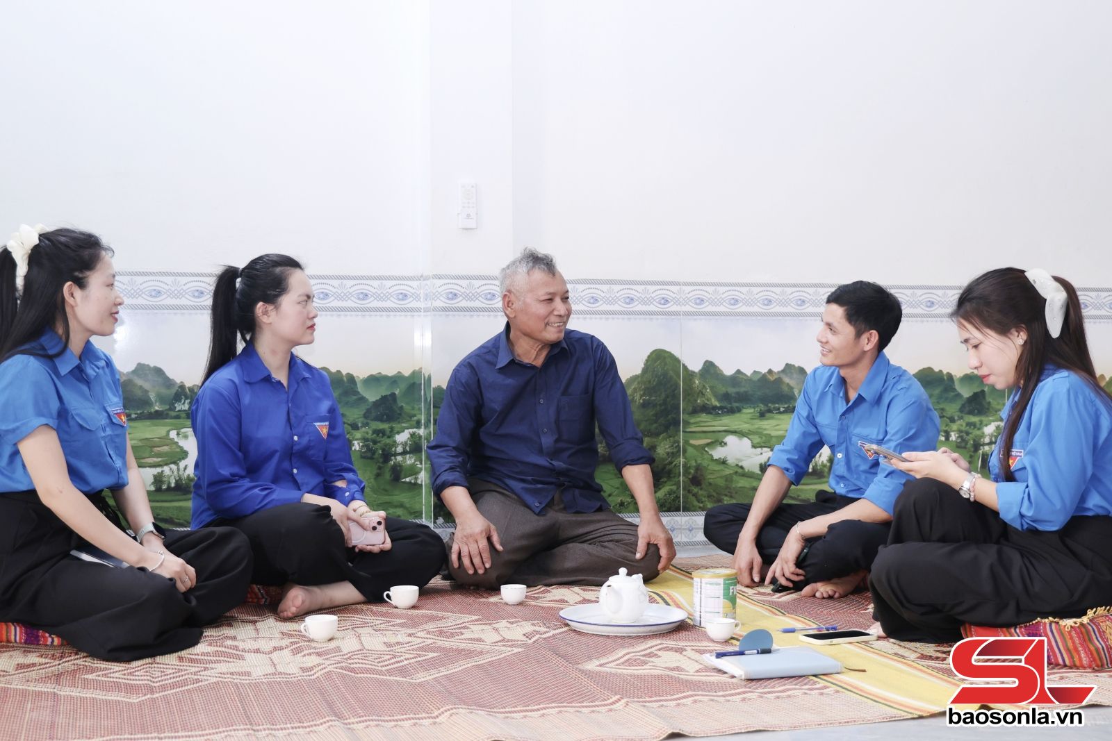 Đoàn viên, thanh nhiên xã Chiềng La tuyên truyền giúp người cao tuổi nhận diện các chiêu trò lừa đảo trực tuyến.