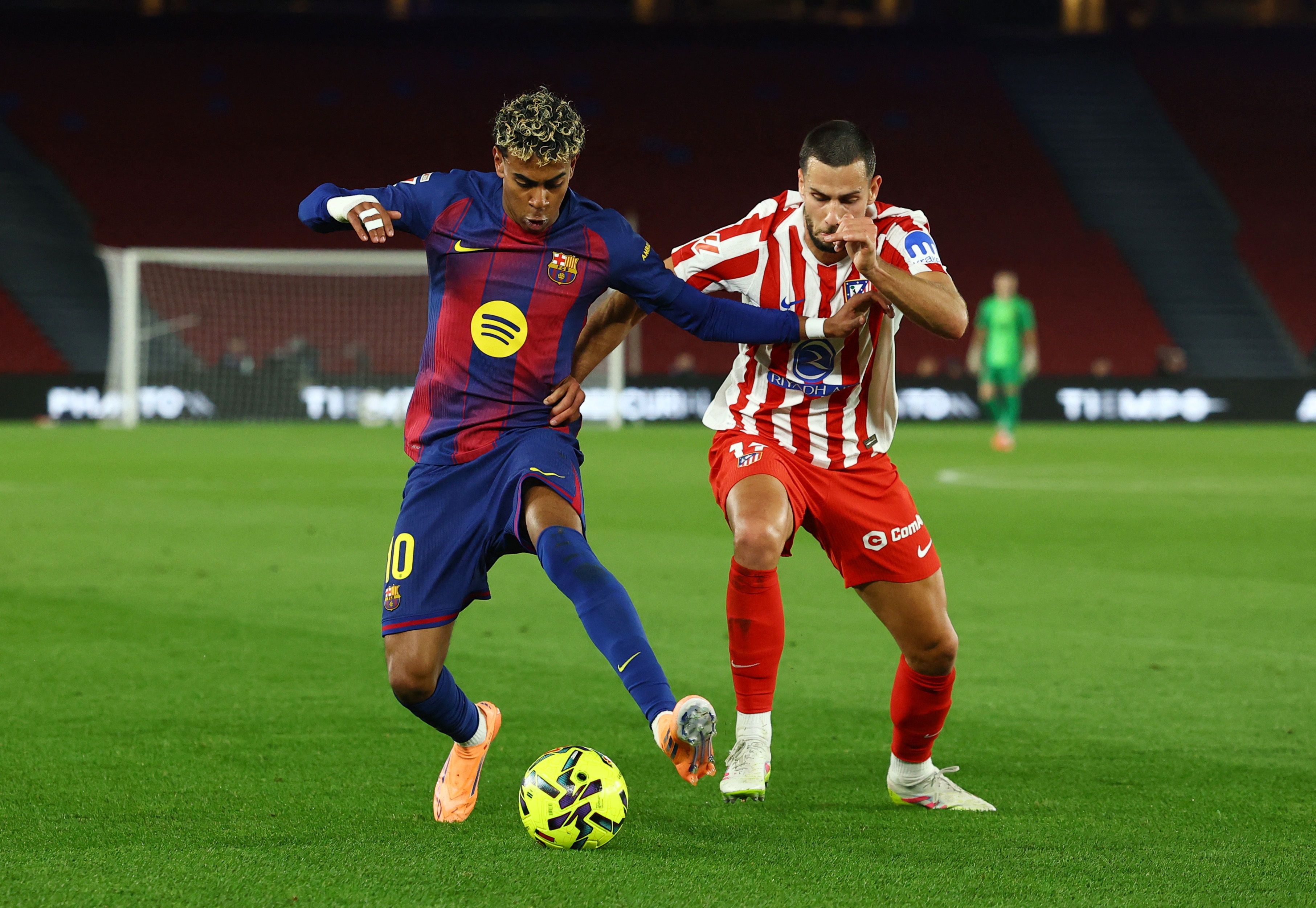 Barcelona tiếp tục duy trì nhịp độ tấn công mạnh mẽ. Dani Olmo mang về một quả phạt đền sau khi bị Pablo Barrios phạm lỗi, nhưng Robert Lewandowski lại đá lên khán đài. Ngay sau đó, Jan Oblak xuất sắc từ chối cú đánh đầu hiểm hóc của tiền đạo Ba Lan, giữ tỷ số hòa 1-1 sau 45 phút đầu.