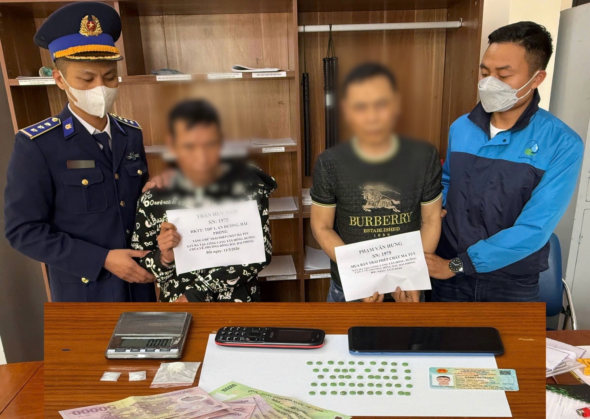 Trước đó, khoảng 19 giờ 05, ngày 11/3, tại khu vực cổng cảng Tân Hồng (phường Đông Hải, TP Hải Phòng), lực lượng trinh sát Đoàn Đặc nhiệm PCTP ma túy số 1 bắt quả tang Trần Huy N. (sinh năm 1975, trú tại phường Lê Chân, Hải Phòng) về hành vi tàng trữ trái phép chất ma túy. Tang vật thu giữ gồm 0,20 gram ma túy đá, 1 điện thoại và 1 xe máy.