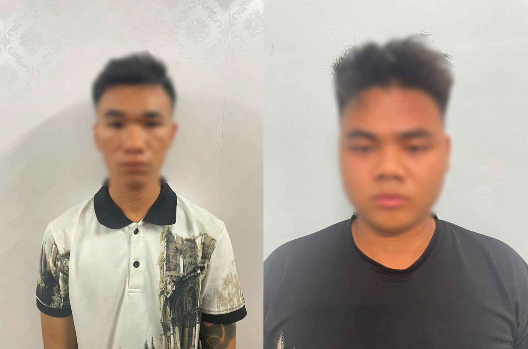 Các đối tượng Phạm Đức Nghĩa và Vũ Mạnh Trường bị bắt giữ tại cơ quan công an. (Ảnh: CAHP).