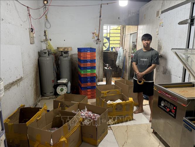 Lực lượng chức năng phát hiện, kiểm tra các cơ sở sản xuất, buôn bán hàng giả là thực phẩm. Ảnh: TTXVN phát