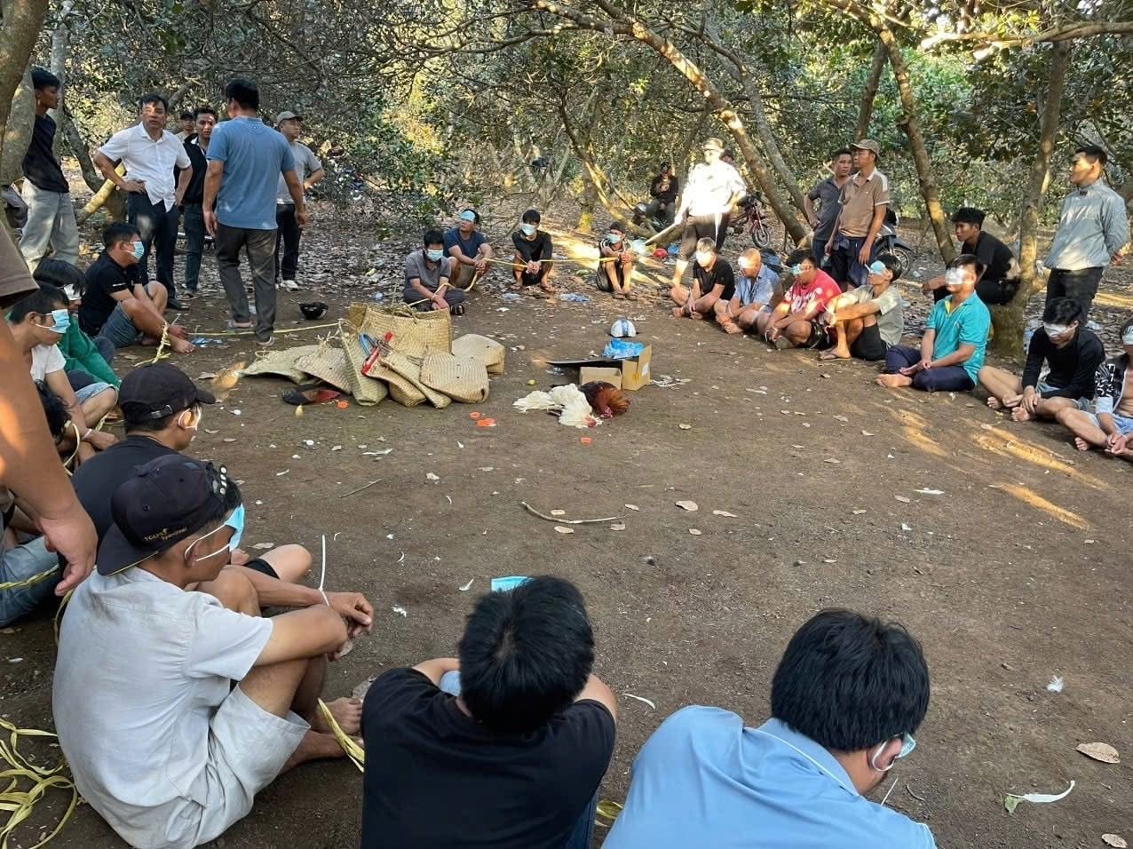 Khi thấy lực lượng Công an, các đối tượng bỏ chạy, nhưng tổ công tác đã khống chế, bắt giữ 32 người, thu giữ 8 con gà, 1 cân điện tử, 10 cuộn băng cựa, 2 cặp cựa kim loại cùng nhiều tang vật liên quan.