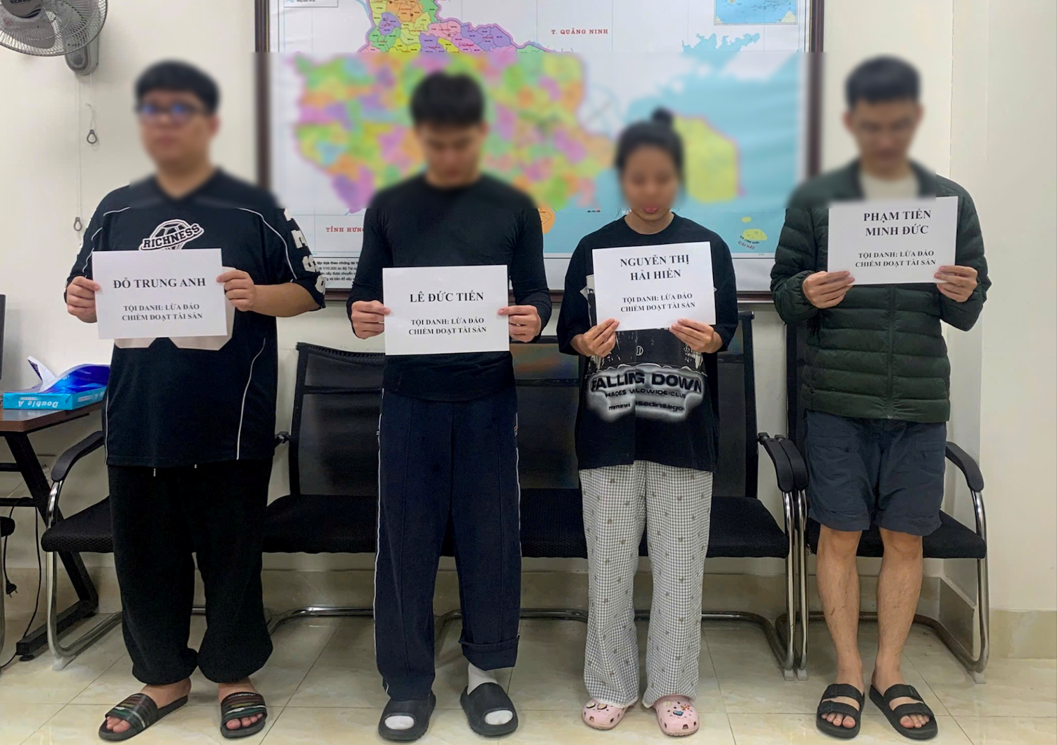 Bắt 4 đối tượng về tội “Lừa đảo chiếm đoạt tài sản” theo khoản 4, Điều 174 Bộ luật Hình sự, khung hình phạt cao nhất đến tù chung thân. (Ảnh: CAHP).