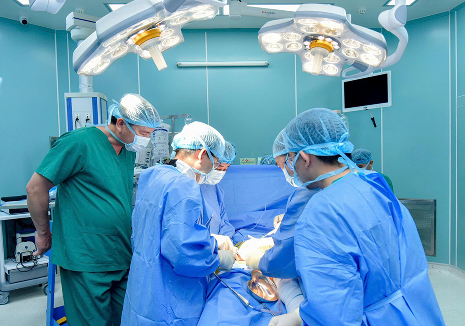 Các bác sĩ thực hiện phẫu thuật cho bệnh nhân. Ảnh: BVCC