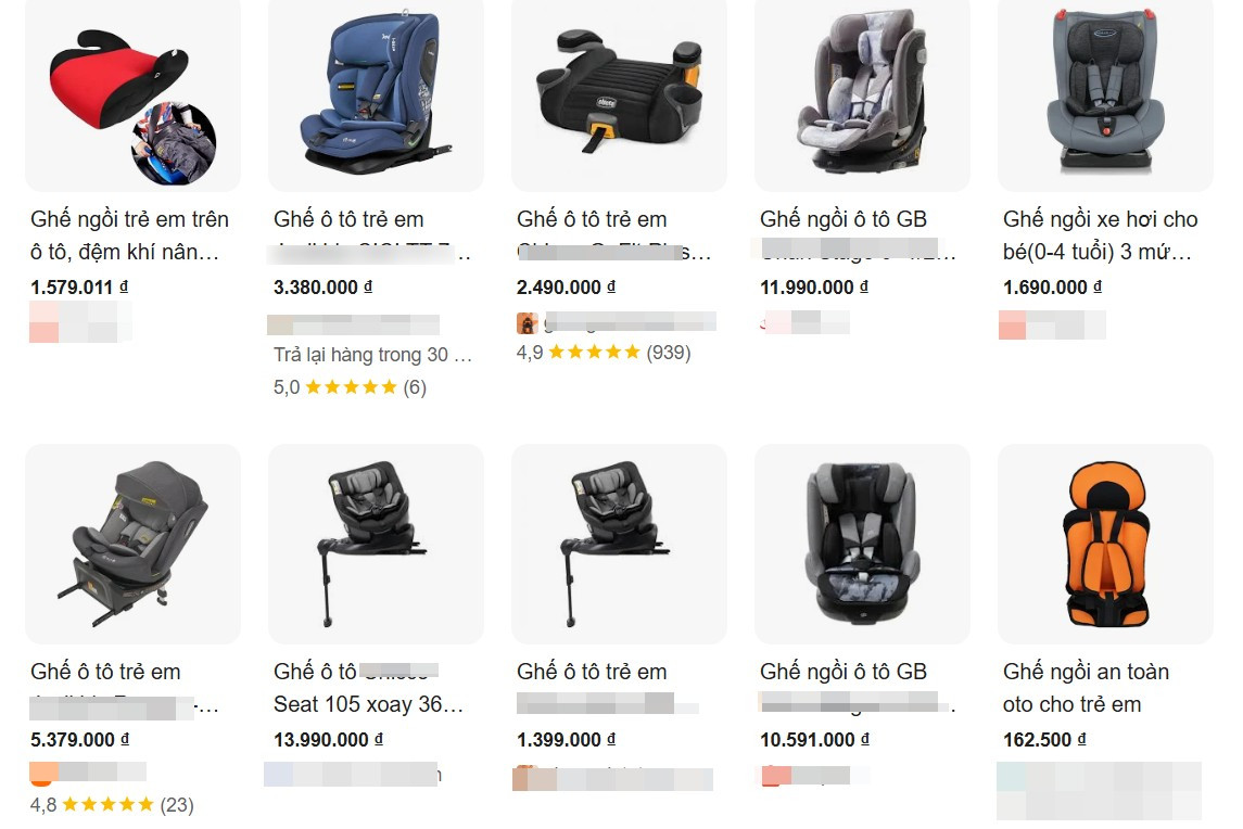 Một số mẫu ghế ngồi ô tô cho trẻ em đang có sự tăng giá trên thị trường. Ảnh: NVCC.