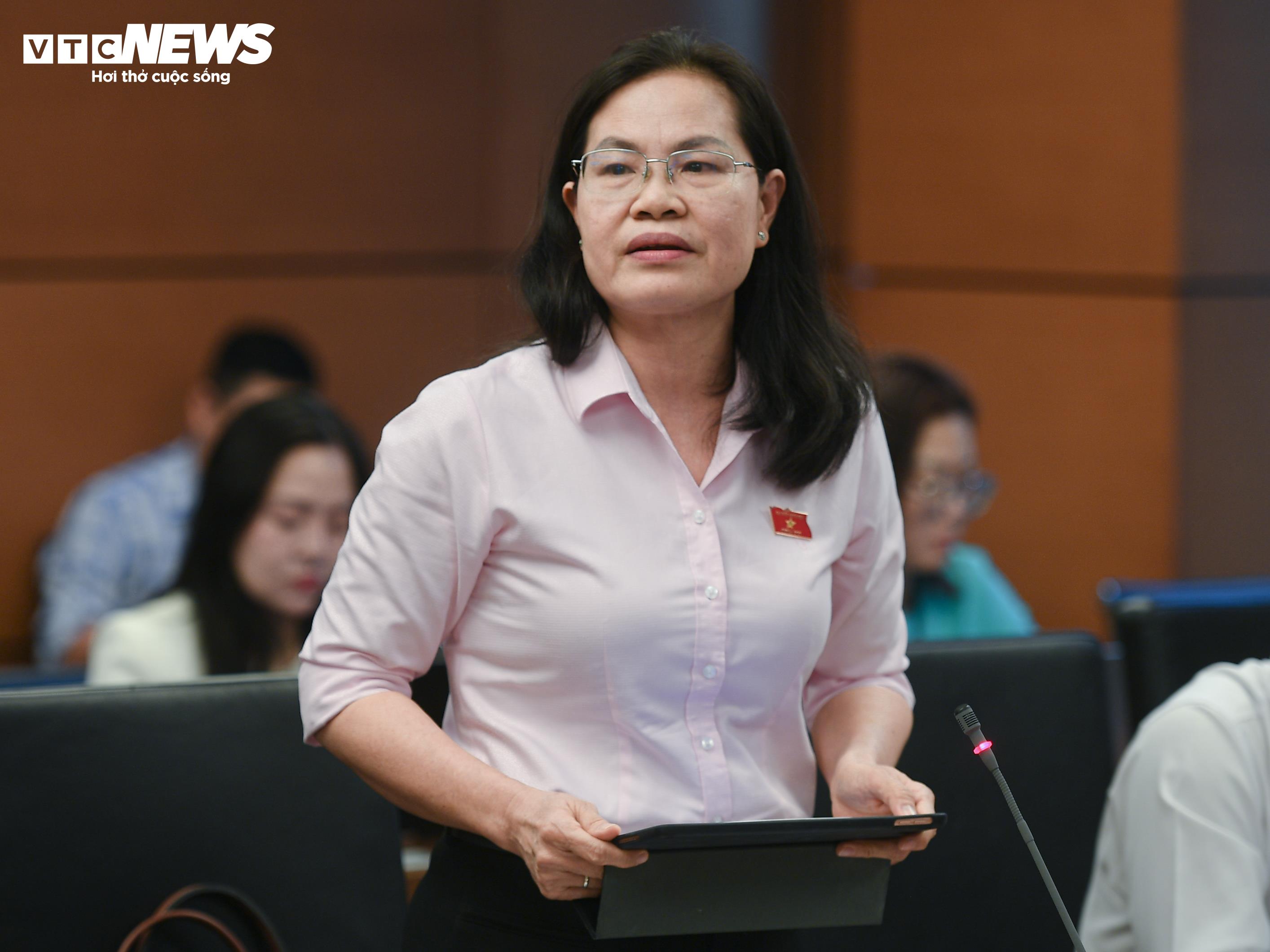 Đại biểu Trần Hoàng Ngân (trái) và đại biểu Nguyễn Thị Hồng Hạnh phát biểu. (Ảnh: Viên Minh)