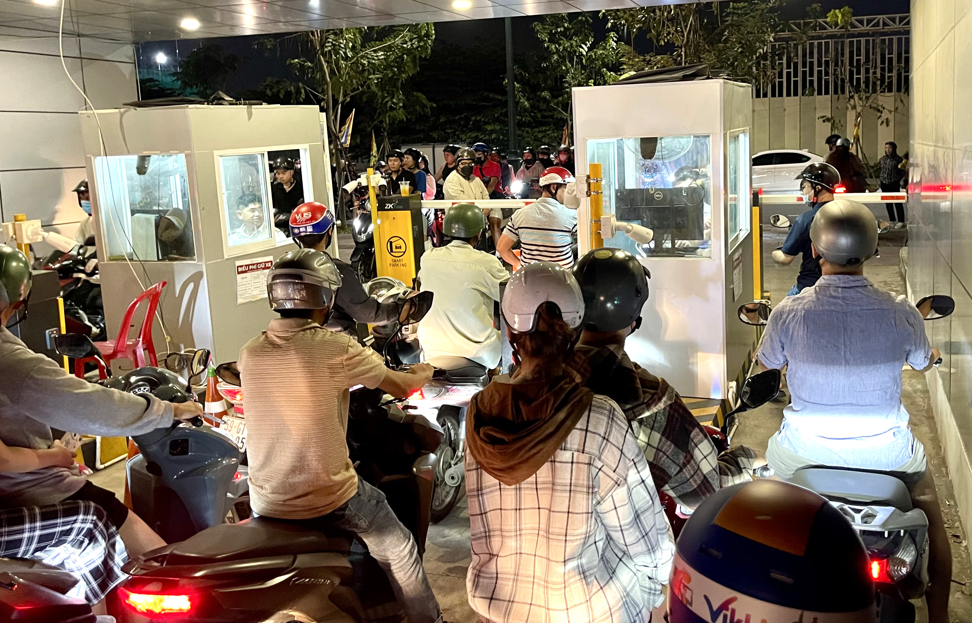 Cổng thứ hai của bãi giữ xe không hoạt động, trong khi lượng xe ra về rất đông