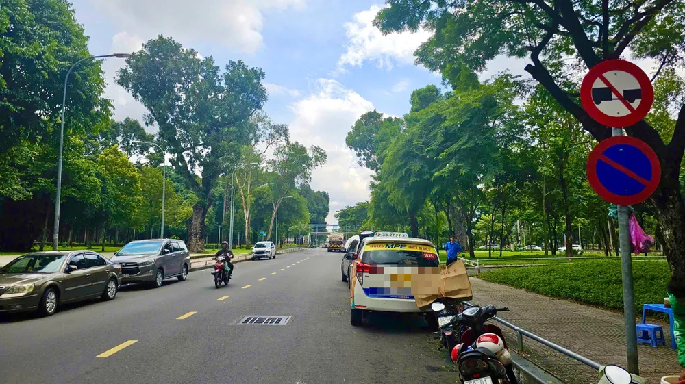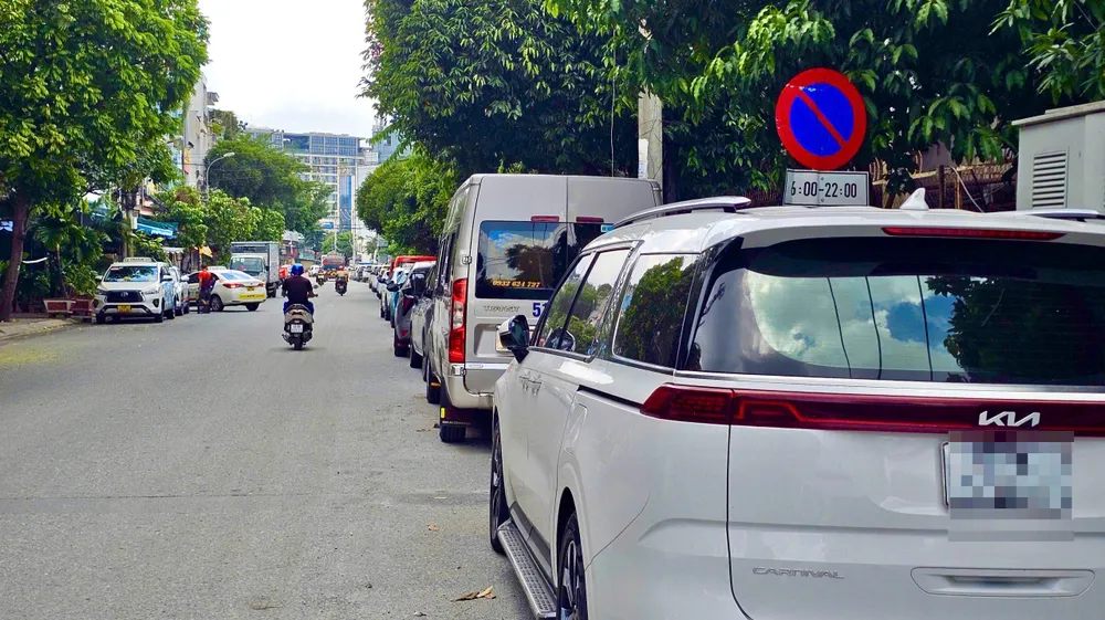 Ngày 27-10, theo ghi nhận của PLO, tại các tuyến đường như Đặng Văn Sâm, Bạch Đằng... gần sân bay Tân Sơn Nhất (phường Tân Sơn Nhất, TP.HCM), tình trạng ô tô dừng, đỗ sai quy định diễn ra phổ biến.