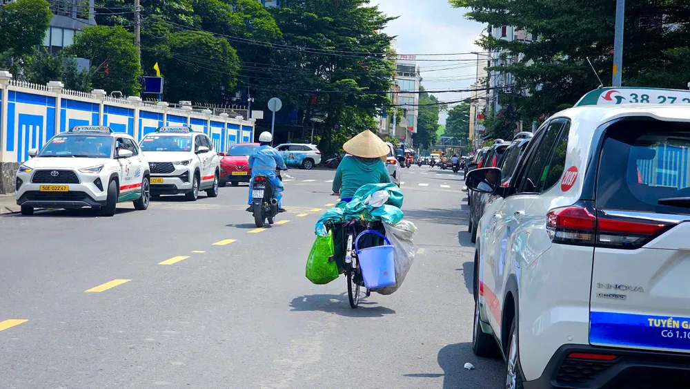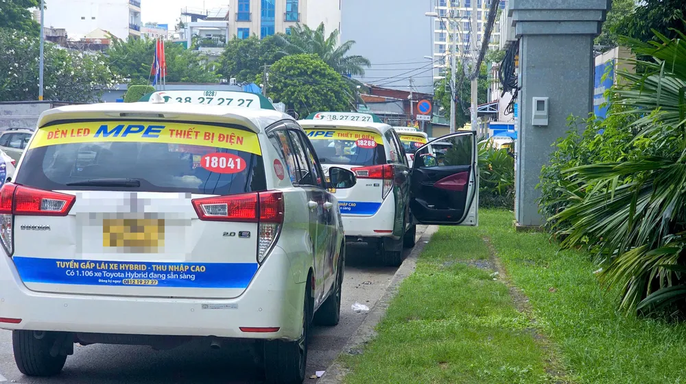 Một số tài xế taxi cho biết việc đậu xe ngoài đường là “bất đắc dĩ”. Ảnh: PHẠM HẢI