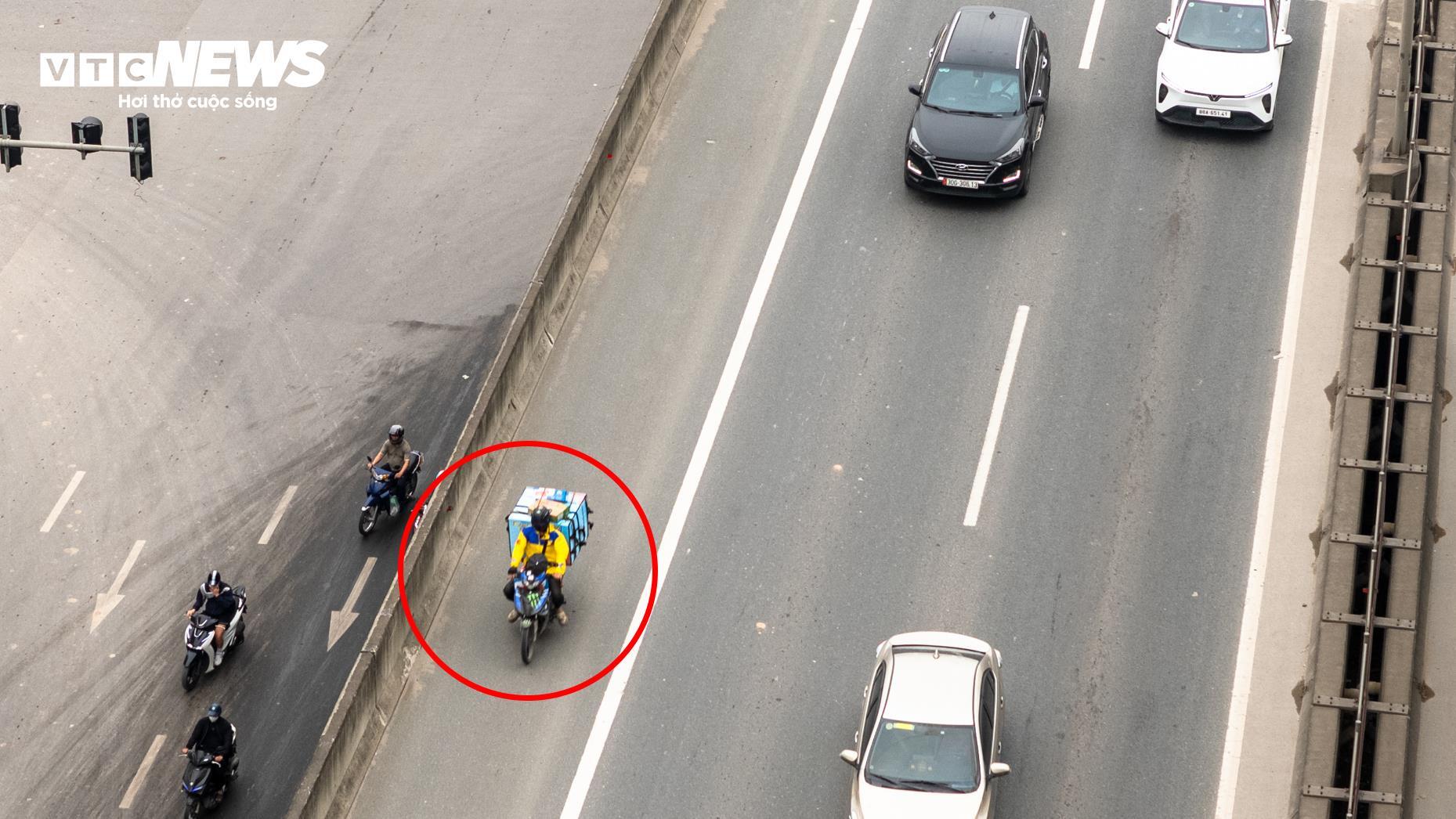 Bên cạnh đó, tình trạng xe máy đi lên Vành đai 3 trên cao vẫn diễn ra. Dù đã có biển cấm tại các lối lên, nhiều người vẫn cố tình vi phạm.
