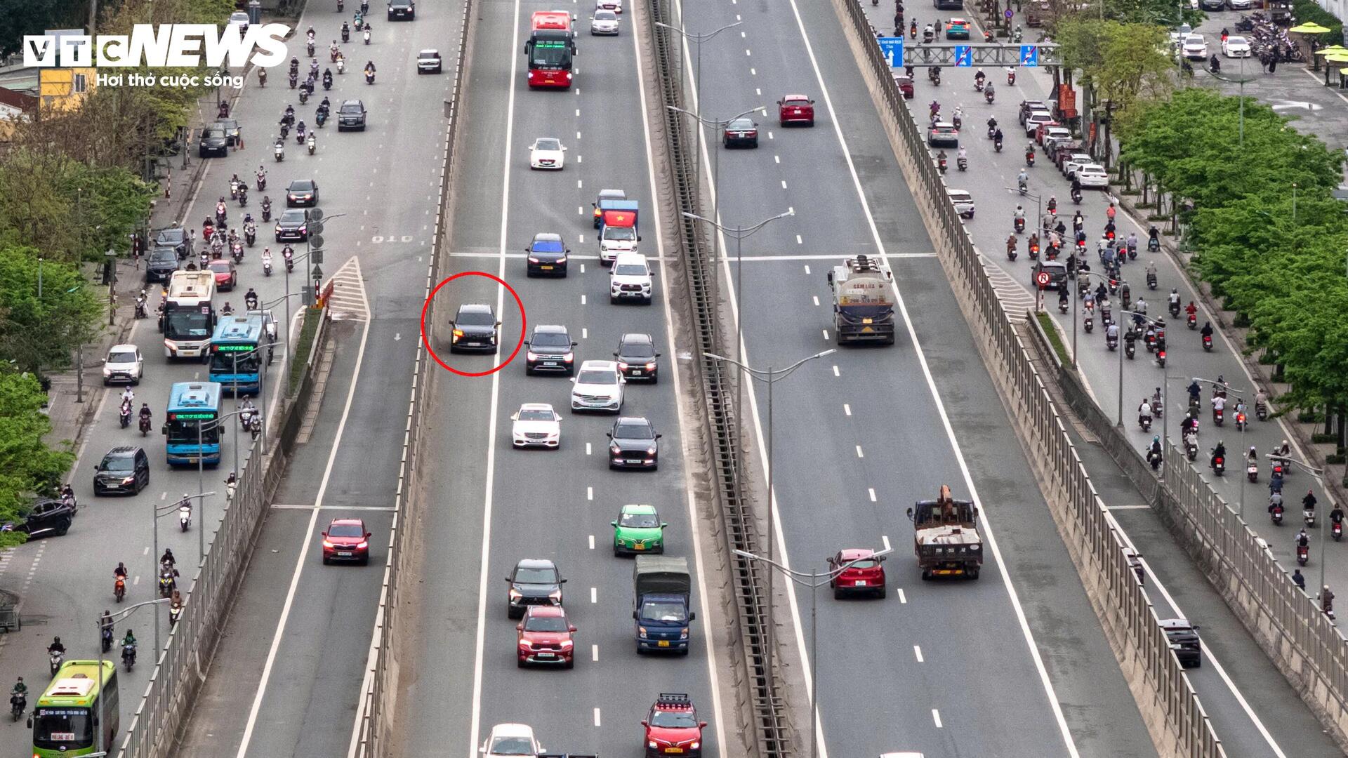 Ghi nhận của PV Báo Điện tử VTC News tại nhiều thời điểm trong ngày, từ khu vực Cầu Thăng Long đến các nút giao như Mai Dịch hay Nguyễn Xiển... tình trạng vi phạm diễn ra phổ biến. Khi vắng lực lượng chức năng, nhiều tài xế ngang nhiên đi sai làn, lấn làn hoặc dừng, đỗ không đúng quy định.