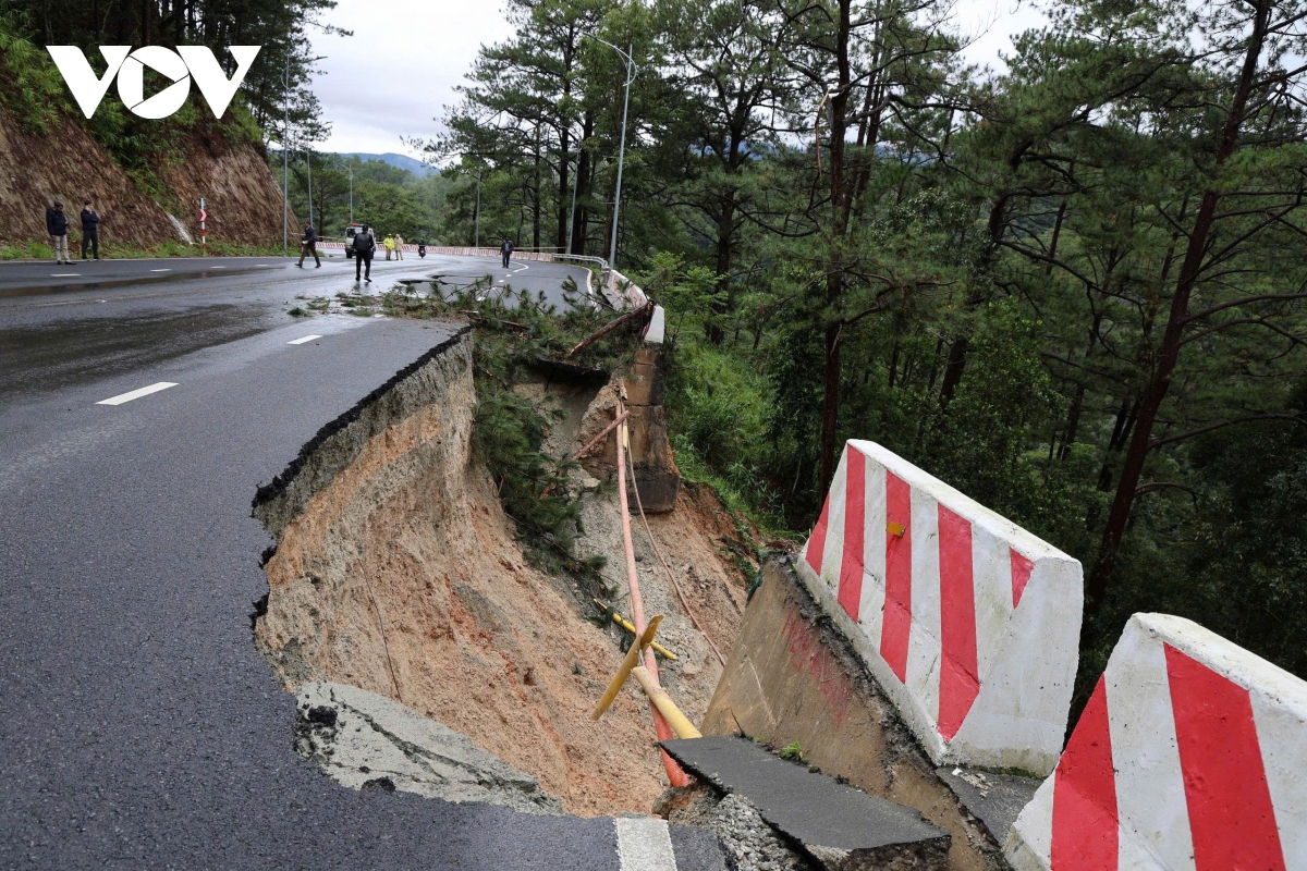 Mưa lớn liên tục và kéo dài với lưu lượng nước tập trung lớn đã gây xói lở móng tường chắn, làm sập tường chắn và đứt gần nửa mặt đường tuyến đèo Prenn tại Km224+650. Đây là vị trí địa hình dốc, nền địa chất phức tạp và đang tiếp tục có nguy cơ sạt trượt do thời tiết vẫn đang diễn biến xấu.