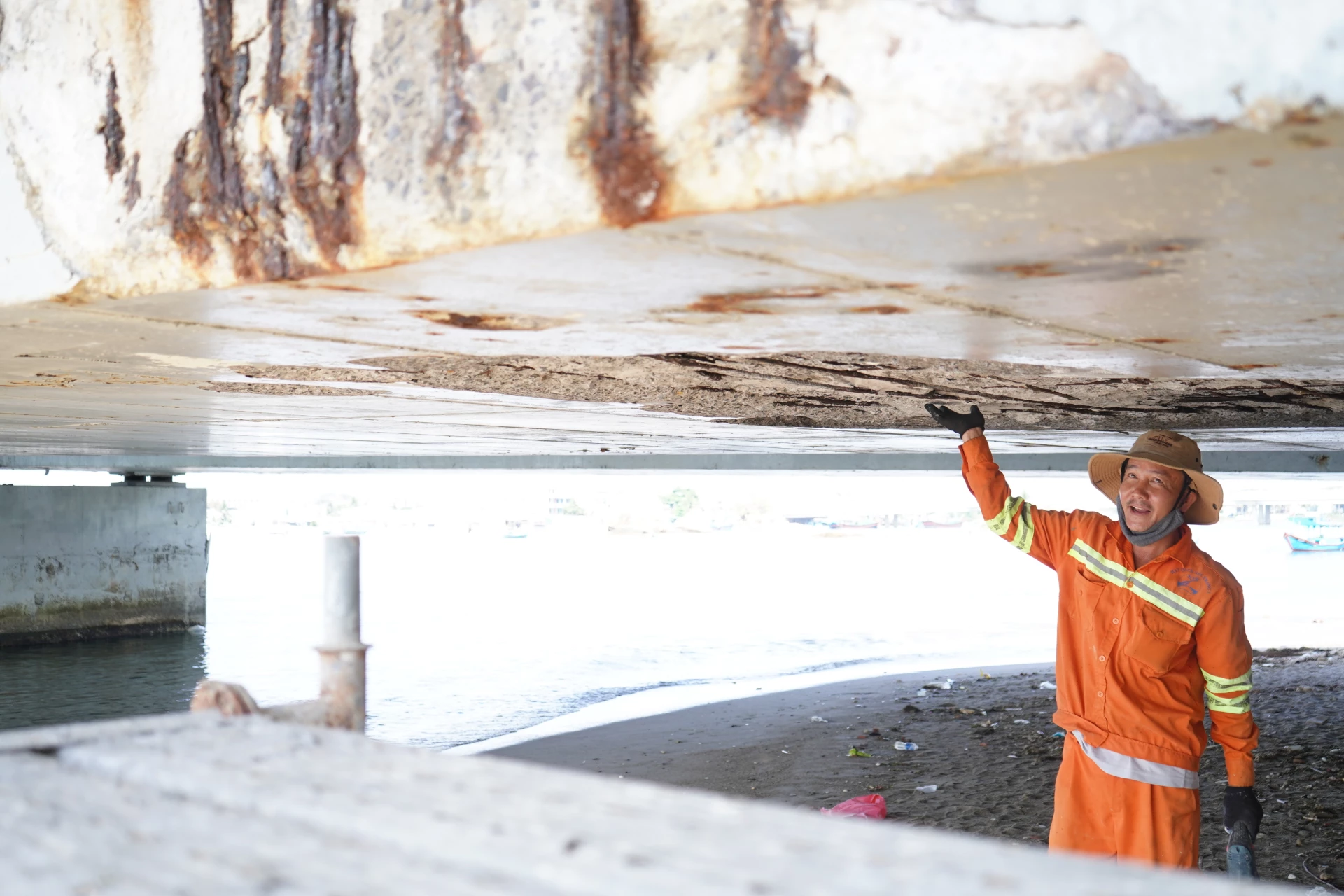 Nhiều vị trí ở gầm cầu bị xuống cấp nghiêm trọng.