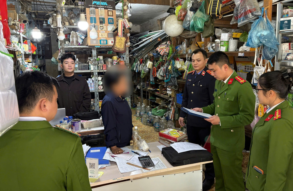 Cơ quan Công an thi hành lệnh khám xét tại cửa hàng bà C.T.G. Tổ dân phố Hợp Giang 12, phường Thục Phán.