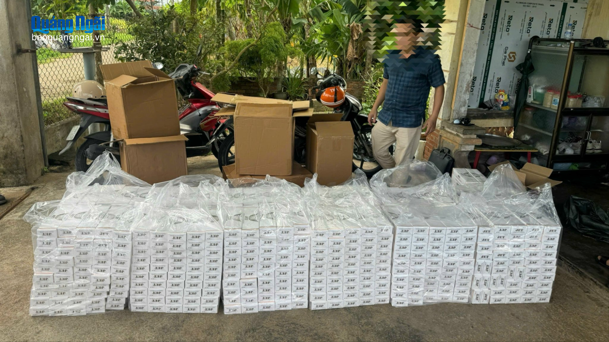 Mở rộng điều tra, phòng Cảnh sát kinh tế phát hiện đối tượng Nghĩa cất giấu thuốc lá tại nhà người thân là bà T.T.Đ (58 tuổi), ở xã Vệ Giang. Qua khám xét nhà bà T.T.Đ phát hiện trên 6 nghìn bao thuốc lá Jet.
