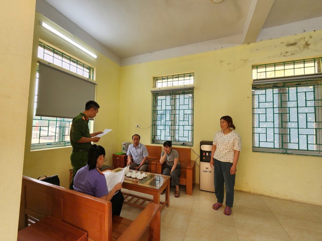 Cơ quan công an công bố các quyết định khởi tố, bắt bị can để tạm giam đối với Lường Thị Thu. Ảnh: Công an tỉnh Phú Thọ