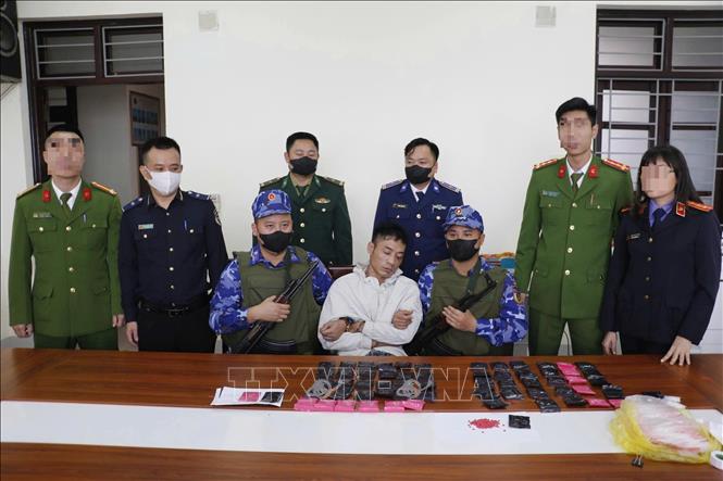 Đối tượng Nguyễn Tiến Dũng và tang vật vụ án. Ảnh: TTXVN phát