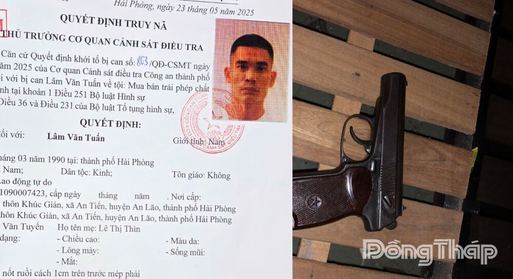 Qua làm việc, Công an xã xác định đây là đối tượng bị Cơ quan Cảnh sát điều tra Công an TP. Hải Phòng ra lệnh truy nã ngày 23-5-2024 về tội mua bán trái phép chất ma túy.