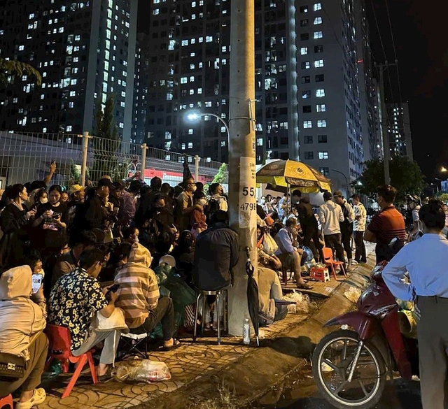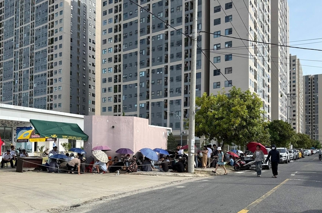 Nhiều người mang theo nước uống, đồ ăn, thậm chí trải chiếu ngủ qua đêm để giữ chỗ. Chị Nguyễn Thị Hồng, công nhân khu công nghiệp Sơn Trà, cho biết chị cùng chồng đến từ tối hôm trước. "Tôi tranh thủ nghỉ ca, mang theo bánh mì, nước uống. Dù mệt nhưng chỉ mong nộp được hồ sơ sớm để có cơ hội mua được căn hộ", chị Hồng nói.