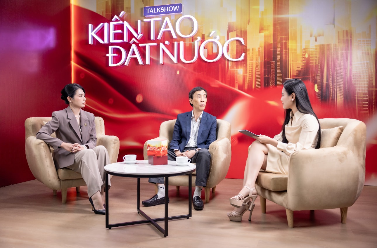 TS. Võ Trí Thành – Viện trưởng Viện Nghiên cứu Chiến lược Thương hiệu và Cạnh tranh và bà Thi Anh Đào – Giám đốc Khối Marketing Masterise Group chia sẻ tại Talkshow “Kiến tạo Đất nước” với chủ đề “Việt Nam – Điểm đến tài chính toàn cầu”.