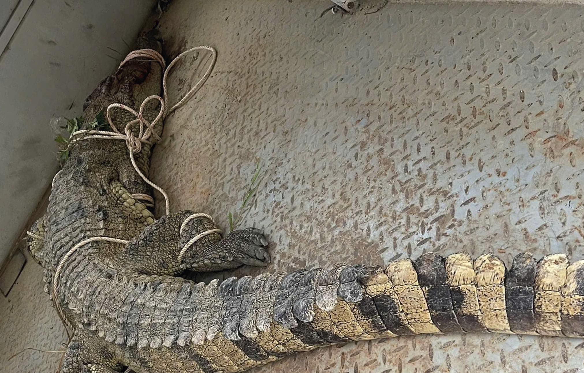 Cá sấu bị bắt. Ảnh: CÔNG AN XÃ DIÊN LÂM