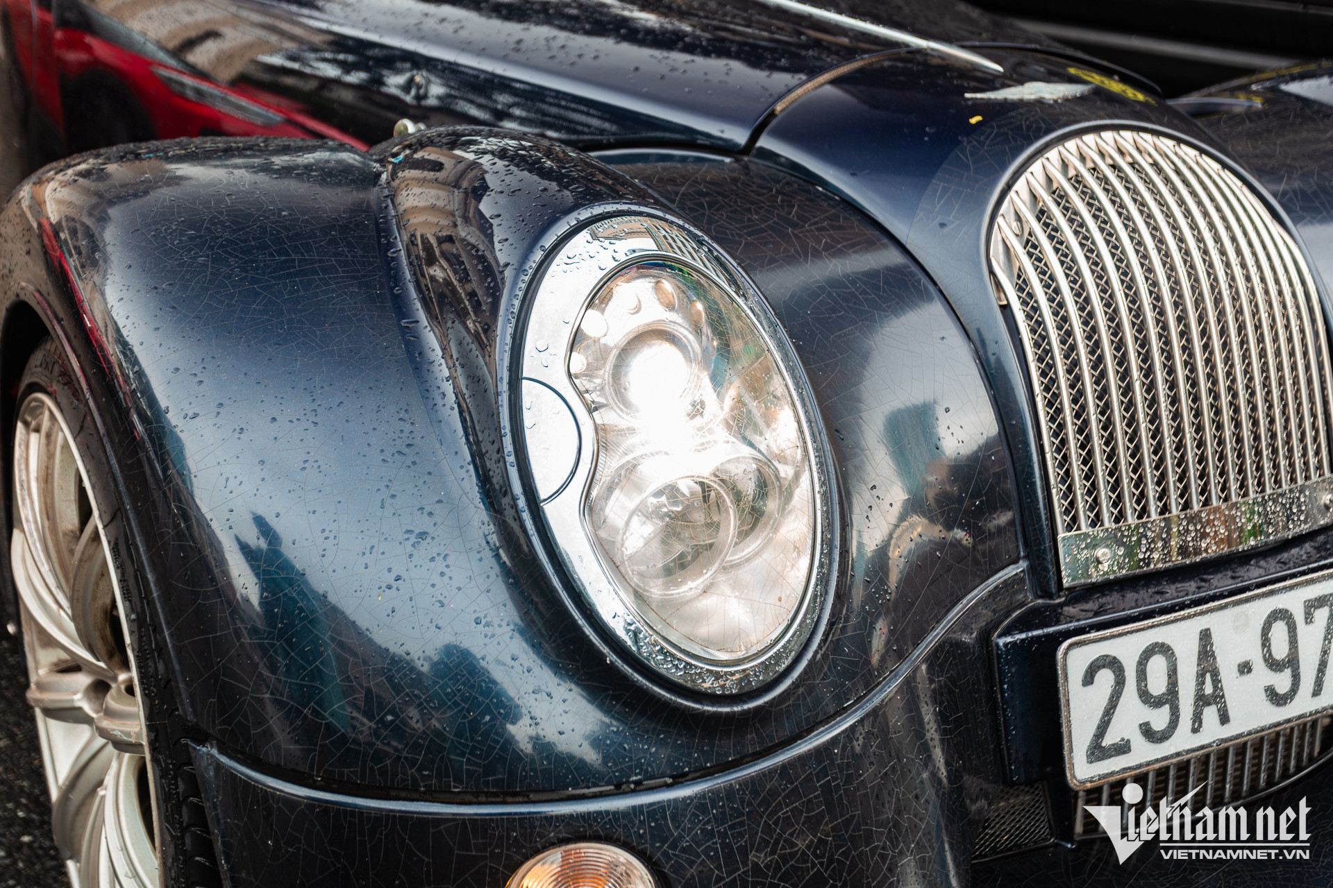 Chiếc Morgan Aero SuperSports này trang bị bộ mâm đa chấu đơn màu bạc, mang kích thước 19 inch, bên trong dùng đĩa phanh thép và cùm phanh màu đen. Đây là chi tiết tạo làm nên sự khác biệt với chiếc Aero SuperSports màu trắng, vốn dùng bộ mâm đa chấu kép sơn màu đen.