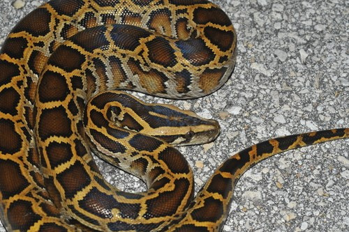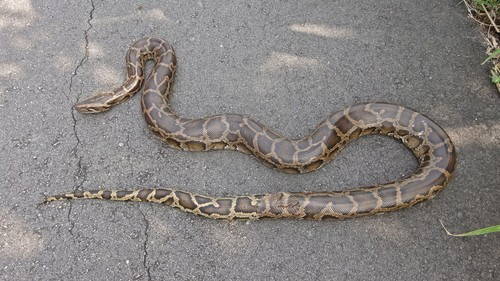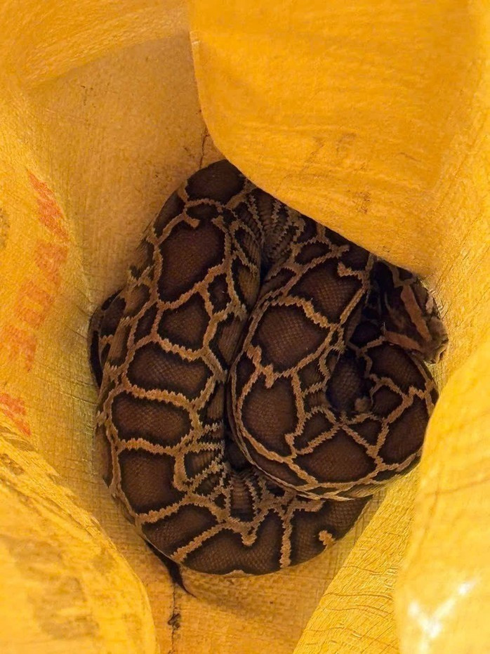 Trăn đất có tên khoa học là Python bivittatus. Theo Thông tư 27/2025/TT-BNNMT của Bộ Nông nghiệp và Môi trường, trăn đất là loài động vật rừng nguy cấp, quý, hiếm thuộc Nhóm IIB, bị hạn chế khai thác và sử dụng vì mục đích thương mại. Ảnh: Eoghan Irwin.